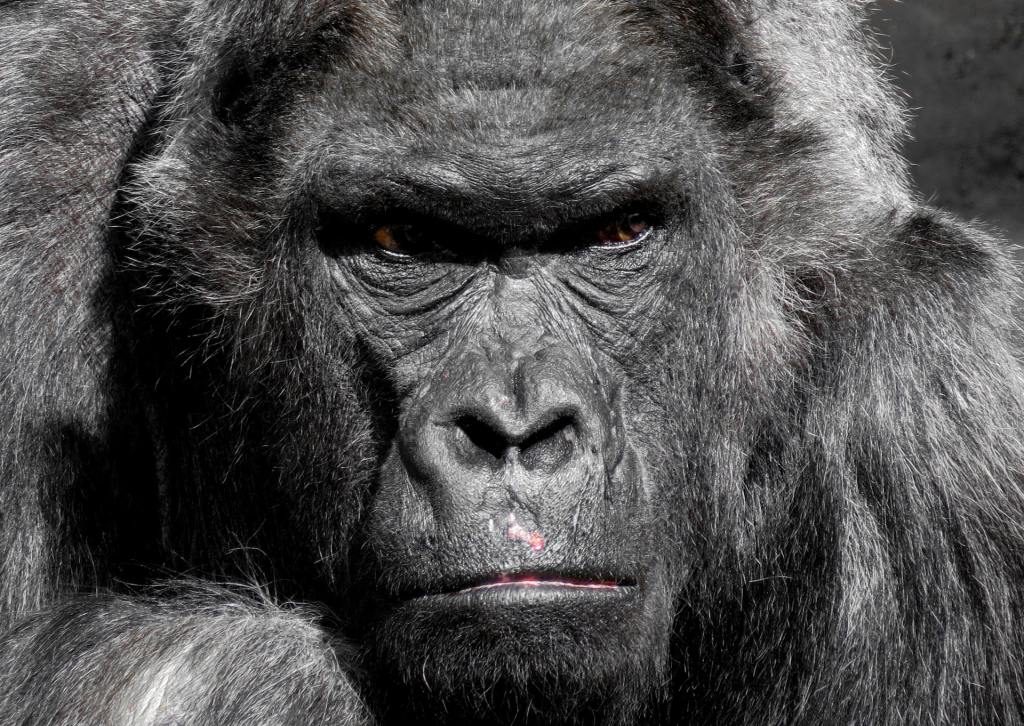 The ape stopped straining.